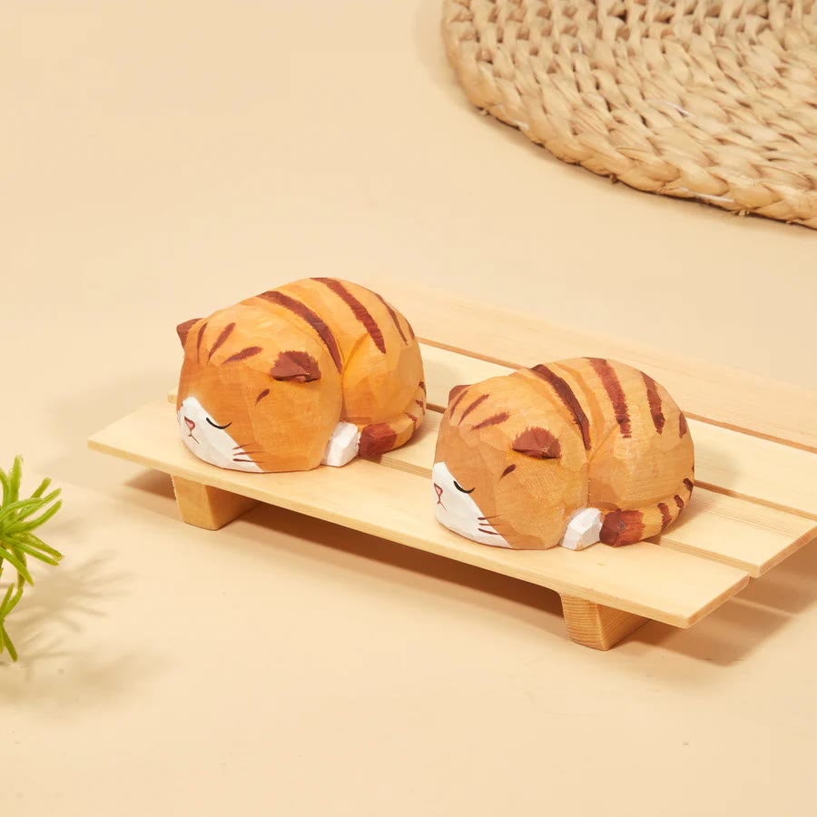 Orange Cat Carved Wooden Sculpture Desktop Deocr For Gift