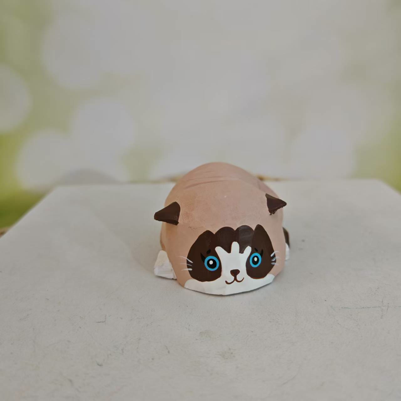 Sleeping Cat Carved Wooden Sculpture Desktop Deocr Keychain For Gift