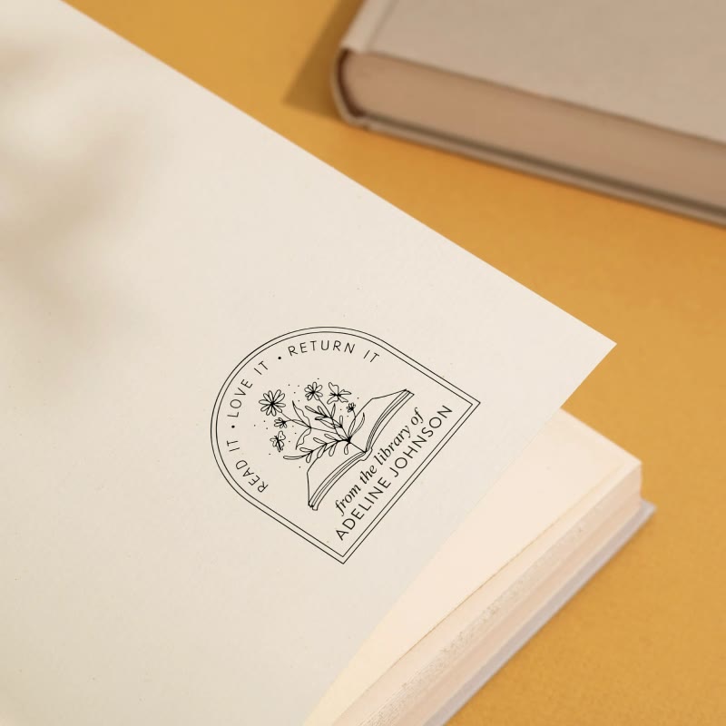 Personalized Wooden Stamp With Flowers Pattern For Book Lovers